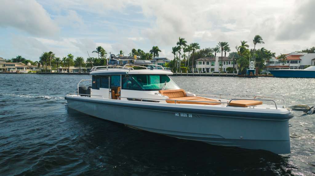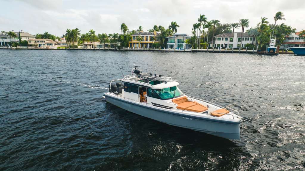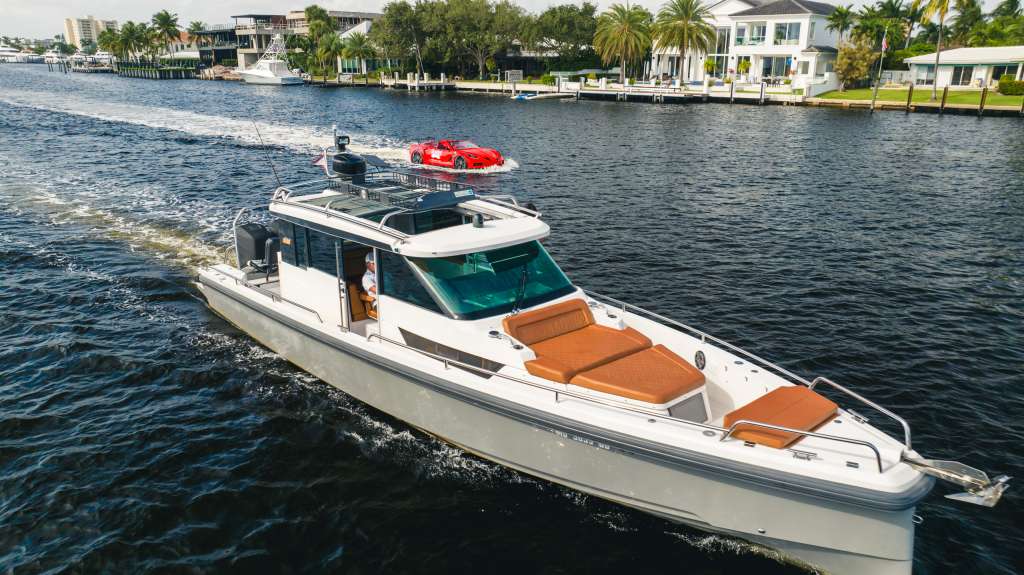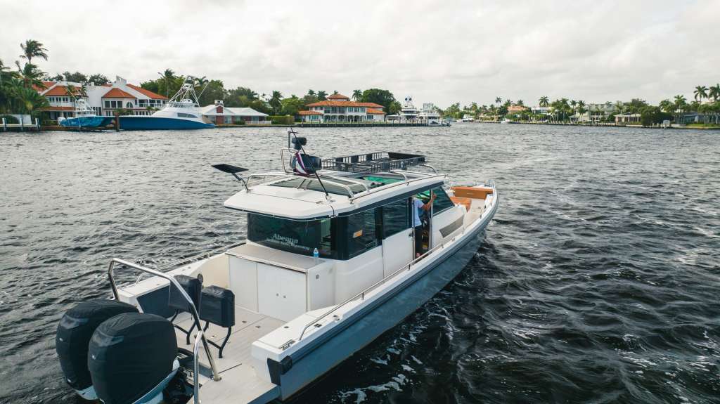 The Axopar 37 XC Cross Cabin is a sleek and sophisticated vessel that combines luxury with versatility on the waters of Fort Lauderdale. At 37 feet, this premium day cruiser offers a perfect balance of indoor and outdoor space. It features a revolutionary cross-cabin design that provides both weather protection and an immersive boating experience.
