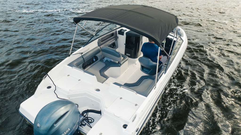 The open-air cabin lets you feel the wind against your face as you travel down the famous intercoastal. A bimini top does provide some protection from the sun if you need it. Of course, the best way to cool off is to take a swim, and the Q3’s swim ladder makes it easy to get in and out of the water. There’s plenty of storage throughout the boat as well as cupholders to keep your drink of choice secure.
