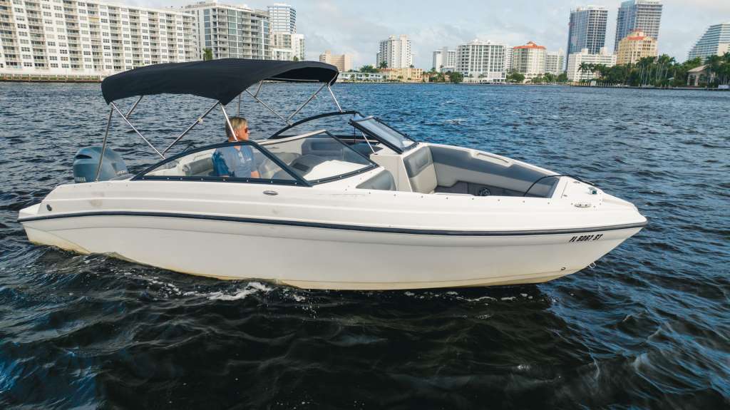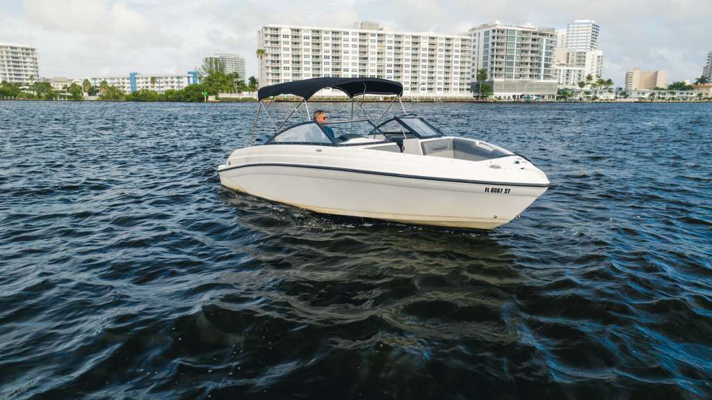 The Rinker Q3 is a compact bowrider that is highly nimble as it cuts through the waters of Fort Lauderdale. Despite its smaller size, sitting at 25 feet, the Q3 features plenty of comfortable seating for you and your friends. The bow seats, which have been called “hot-tub” style seats, are extra deep to secure you to the boat better and offer more comfort.