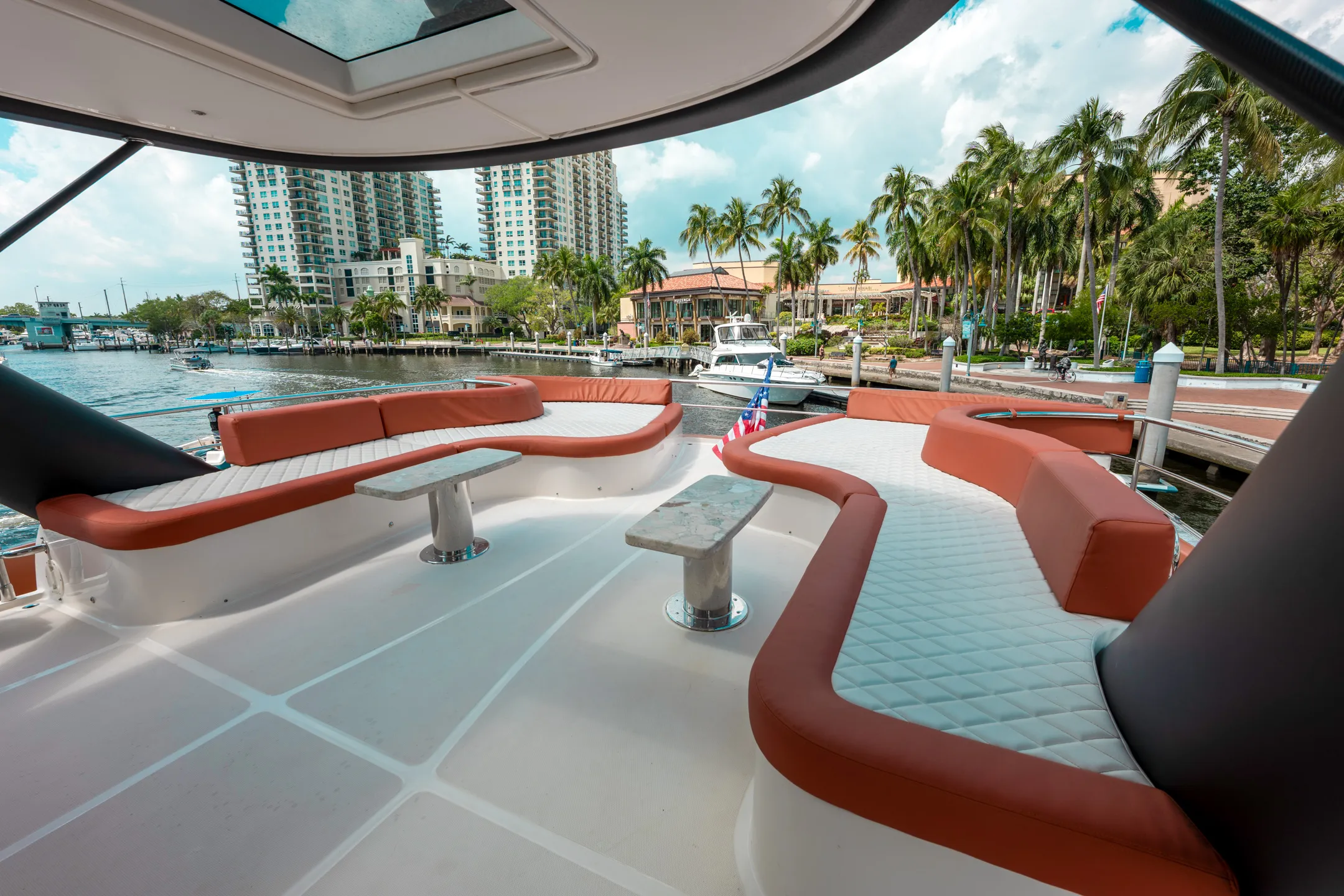 When it released, the VG PC 62 became the first fully Italian-built powered catamaran and set a new standard for luxury cruising catamarans, combining Italian craftsmanship with modern performance. Designed for both relaxation and adventure, this spacious yacht offers an inviting aft deck with a dining area and plush seating, perfect for alfresco meals or lounging in the sun. Wide steps lead to the expansive flybridge, where guests can enjoy panoramic views, a wet bar, and ample shaded or sunlit seating.